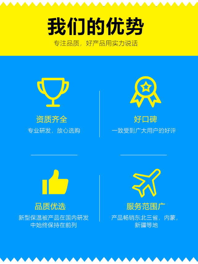 我們本著客戶(hù)之上,服務(wù)至上的原則,爭(zhēng)創(chuàng)國(guó)內(nèi)保溫被行業(yè)的引導(dǎo)者。